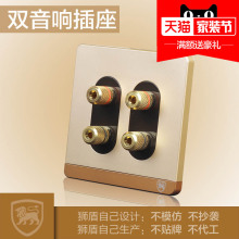 狮盾无框开关插座四头四柱四孔二位音响插座音箱插座面板香槟金