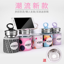 萌迷你玻璃杯女时尚小巧便携可爱清新茶杯耐热带盖过滤网花茶杯子