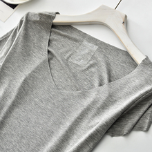 DU2港风无痕天丝棉V领上衣宽松打底衫 2017夏装新款T恤女短袖