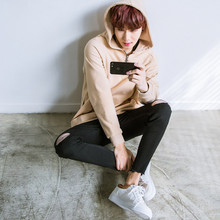 新款 男装黑色九9分膝盖破洞裤毛边韩版小脚修身休闲牛仔裤乞丐裤