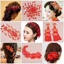 中式新娘红色韩式头花饰品手工水晶头饰结婚发饰婚纱礼服配饰