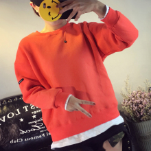 韩国代购2016冬季韩版纯色宽松纯棉加绒套头百搭假两件卫衣女装潮