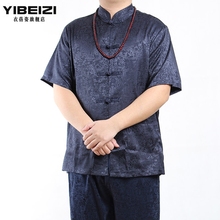 中国风男装夏季中老年短袖唐装套装仿蚕丝男老人大码民族服装爸爸