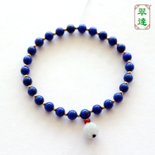 翠达 天然4mm青金石手链 配翡翠小猪女士水晶手串 16293