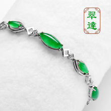 翠达 天然A货翡翠 18K镶嵌冰种阳绿翡翠女士手链 0688