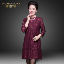芭倩罗娜中老年女装春装连衣裙中长款婚礼妈妈装春季新款蕾丝裙子