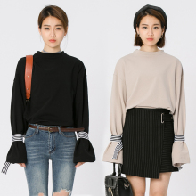 【拍下立减9元】2017春季新款韩版学生宽松百搭喇叭袖长袖T恤女