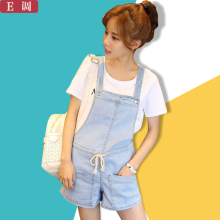 E调2016春夏新款韩版牛仔连体背带裤短裤宽松显瘦休闲吊带裤女潮