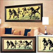 画龙绣金有框画 八骏图 徐悲鸿马 办公室书房装饰画中式现代壁画