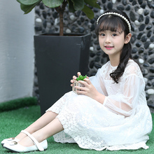 女童连衣裙春装2017新款童装韩版中大童泡泡袖蕾丝刺绣网纱公主裙