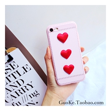 韩风简约粉色爱心苹果7plus手机壳iphone7/6S/plus皮质全包保护套