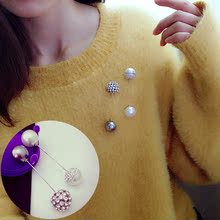 1对价格时尚珍珠一字插针开衫别针四季服装胸针女水钻别针