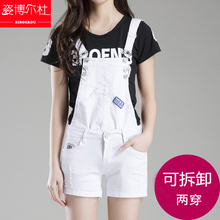 夏装新款少女韩版可拆卸牛仔背带裤短裤青少年初中学生休闲吊带裤