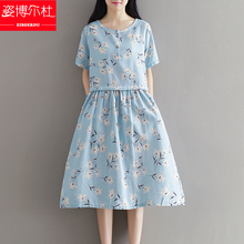 青少年夏装少女休闲五分中袖宽松连衣裙初中高中学生文艺复古长裙