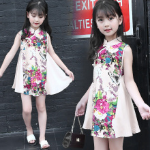 三岁女童夏装旗袍5无袖七彩连衣裙7中大童纯棉可爱背心裙公主裙子