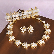新娘头饰发饰结婚纱配饰水钻项链韩式婚礼首饰品皇冠三件套装包邮