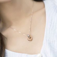 古今之恋 韩版双层圆锆项链女镀玫瑰金流苏锆石吊坠短款锁骨链女