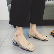 2017春季新款低跟单鞋韩版个性方头金属圆扣浅口女鞋粗跟小皮鞋潮
