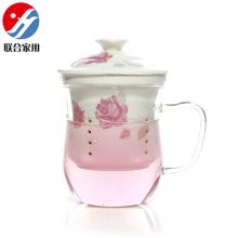 联合家用 玻璃个人水杯带盖花茶杯陶瓷过滤泡茶杯子办公室茶水杯