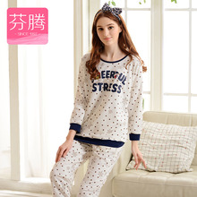 芬腾新款2016春秋睡衣女长袖针织棉套头家居服时尚休闲女睡衣套装
