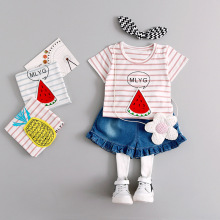 童装2017夏装新款条纹女童幼儿宝宝韩版两件套短袖套装潮1-2-3-4