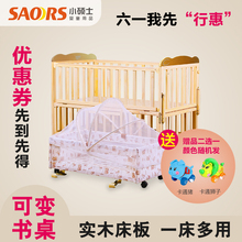 小硕士婴儿木床实木多功能新生儿床可变书桌带滚轮蚊帐无漆摇篮床