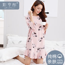 彩亨彤新款睡裙女春款宽松可爱纯棉宽松长袖全棉家居服套装睡衣夏