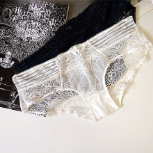 蕾丝内裤女士性感诱惑欧美简约时尚包臀低腰超薄透明黑白色三角裤