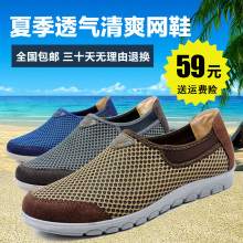 老北京布鞋男网鞋夏季透气防臭大码休闲爸爸鞋中老年懒人鞋网面鞋