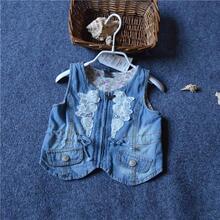 外贸 韩版女童宝宝春夏牛仔背心洋气坎肩纯棉布蕾丝飞袖薄马甲