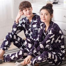 花可儿纯棉情侣睡衣秋季长袖开衫韩版休闲男女外穿全棉家居服套装