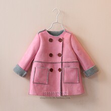 清仓2016年外贸新款女童装宝宝3色入双排扣仿鹿皮绒大衣棉服B2611