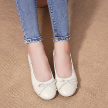 春季休闲女鞋豆豆鞋浅口蝴蝶结女单鞋工作鞋女软底中老年妈妈皮鞋