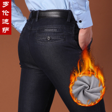 罗伦迪萨冬装加绒牛仔裤直筒免烫加厚弹力棉质休闲牛仔裤高腰男裤