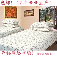 酒店宾馆旅馆 床上用品 实惠布草全棉平纹 110*90大小格 被套