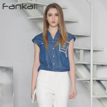 梵凯fankai夏季新款女装修身显瘦无袖牛仔衬衫打底轻奢短款衬衣