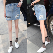 渔网牛仔半身裙女破洞夏季短裙显瘦百搭韩版毛边包臀裙学生短裙子