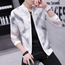 17春夏新款男士防晒衣薄款条纹夹克外套超薄网纱镂空透气户外衣服