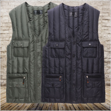 男秋冬中老年宽松马甲男士爷爷棉坎肩老人内穿多兜马夹羽绒棉马甲