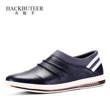 火枪手2017新款商务休闲皮鞋男士休闲鞋套脚乐福鞋牛皮舒适低帮鞋