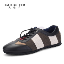 火枪手头层牛皮男鞋时尚皮布拼接条纹小白鞋休闲鞋男士低帮驾车鞋