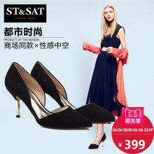 St&Sat/星期六2017春季新款羊皮尖头侧空高跟单鞋女鞋SS71114340