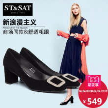 St&Sat/星期六2017新款闪亮方扣女鞋羊反绒方头单鞋SS71111194