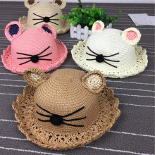 夏天女童草帽儿童太阳帽小猫咪高档纸草帽小女孩公主遮阳帽2-8岁