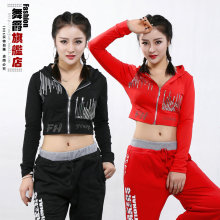 薄款JAZZ舞蹈团队表演嘻哈街舞上衣高腰短装卫衣爵士舞台ds演出服