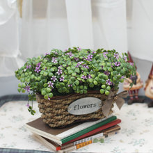 包邮!蔺草筐仿真花套装 小盆景 迷你盆栽 办公桌假花绿植物 摆件