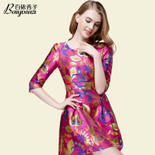 百依秀子2015春装七分袖宫廷复古女装修身高端气质连衣裙B942