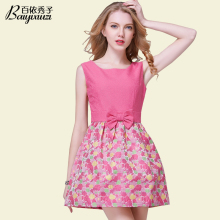 百依秀子夏装新款女装时尚小清新绚丽收腰无袖圆领连衣裙 B1393