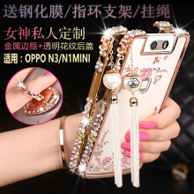 oppon3手机壳oppoN3保护套金属边框n5207外壳N5209水钻挂绳支架女