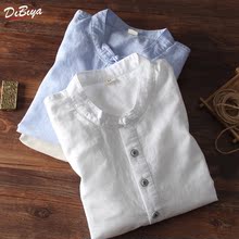 白衬衫男土短袖立领韩版青少年夏季宽松棉麻衬衣潮流亚麻衬衫K